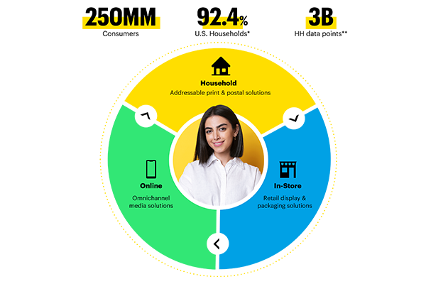 Quad has over 3B household data points, giving you strategic insights that you can use to make smarter decisions across multiple channels. Our advanced in-home media solutions, retail display and packaging solutions, and omnichannel media solutions help you build better marketing that’s more efficient, effective, and scalable in the places that mean the most.